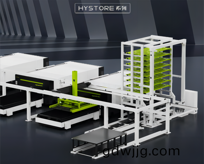 鬆穀柔性(xing)激光(guang)切(qie)割係(xi)統及智(zhi)能(neng)倉儲(chu)係統(tong),鍼(zhen)對(dui)金屬(shu)工件批(pi)量切割作業時,